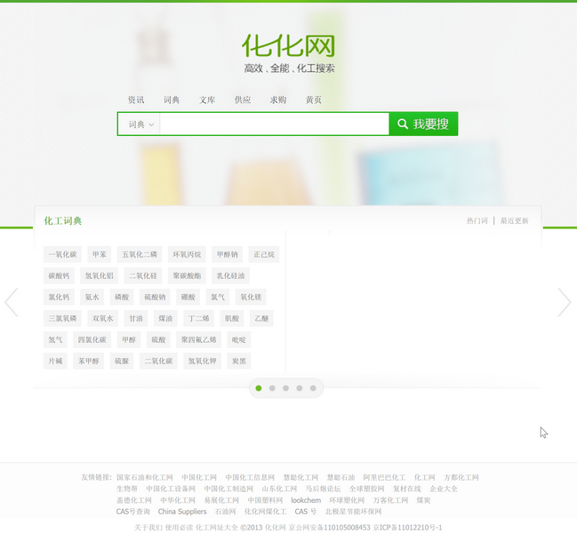 化化網(wǎng)—能源化工垂直搜索引擎,高效全面的能源化工垂直搜索引擎,致力于為能源化工行業(yè)提供產(chǎn)品供應(yīng)、產(chǎn)品求購(gòu)、行業(yè)新聞、產(chǎn)品百科、公司黃頁(yè)等精準(zhǔn)搜索服務(wù),為您帶來(lái)前所未有的搜索體驗(yàn)!