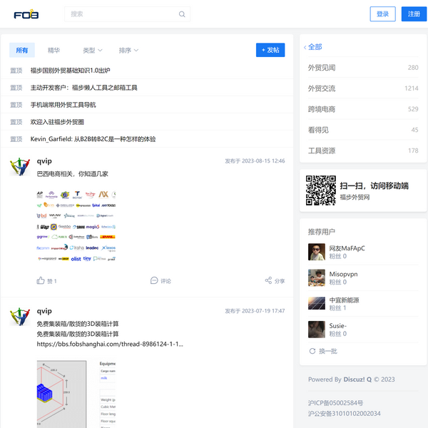 福步外貿(mào)論壇(FOB Business Forum) 福步外貿(mào)論壇是中國***的專業(yè)外貿(mào)論壇,致力于打造全球***人氣、最實用的外貿(mào)社區(qū)。