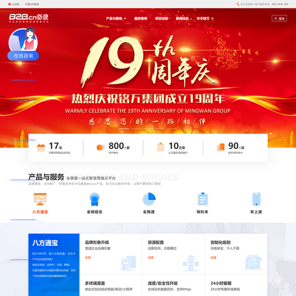 銘萬公司作為中國領(lǐng)先的中小企業(yè)互聯(lián)網(wǎng)服務(wù)商,為中小企業(yè)提供大數(shù)據(jù)網(wǎng)絡(luò)營(yíng)銷、移動(dòng)互聯(lián)網(wǎng)應(yīng)用、垂直B2B電子商務(wù)、高端定制、打造營(yíng)銷落地頁等服務(wù)。