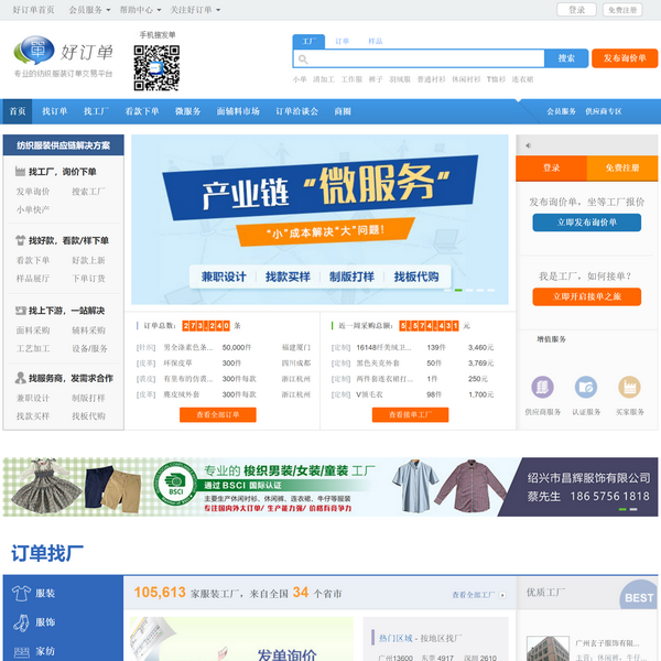 好訂單網(wǎng)是專業(yè)的紡織服裝加工訂單交易平臺(tái),聚集了眾多優(yōu)質(zhì)紡織服裝加工廠,包括服裝服飾、家紡、面輔料、工藝、設(shè)備等。為紡織服裝企業(yè)提供高效準(zhǔn)確的紡織服裝訂單發(fā)布、匹配服裝廠及支付托管保障等服務(wù)。