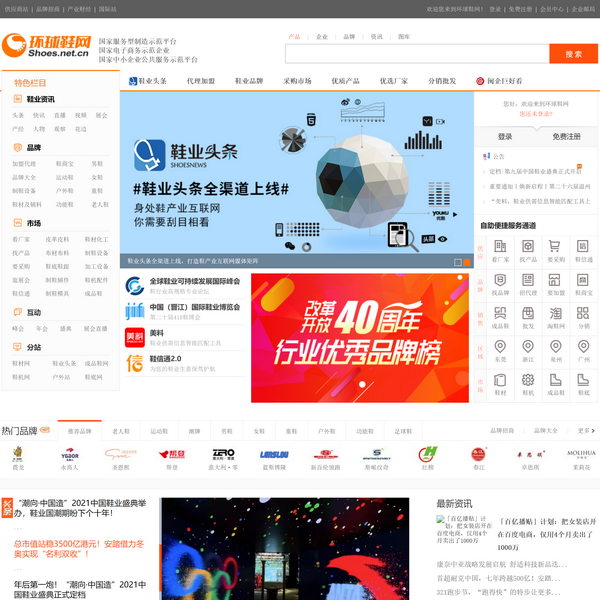 環(huán)球鞋網(wǎng)優(yōu)質(zhì)B2B鞋子行業(yè)電子商務(wù)平臺(tái),為您提供鞋子品牌加盟,運(yùn)動(dòng)鞋,休閑鞋,皮鞋,女鞋,男鞋,童鞋品牌以及鞋材輔料,鞋機(jī)模具等產(chǎn)品供應(yīng)商,同時(shí)還提供鞋子行業(yè)產(chǎn)經(jīng)資訊新聞,為生產(chǎn)廠家及貿(mào)易商提供全面的鞋產(chǎn)品供應(yīng)求購(gòu)信息。