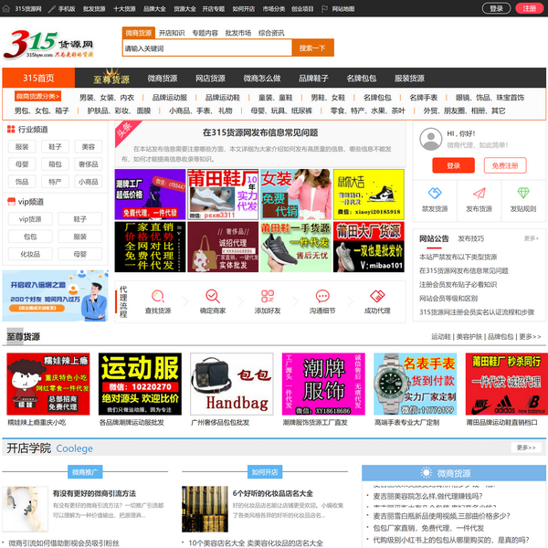 315貨源網(wǎng)旨在幫助創(chuàng)業(yè)者更好的尋找淘寶、微商貨源網(wǎng)店代理,提供全方位的微商代理貨源及開(kāi)店創(chuàng)業(yè)如何找免費(fèi)淘寶、微商貨源知識(shí)。網(wǎng)站內(nèi)容專業(yè),包含廠家一手網(wǎng)店代理代銷、進(jìn)貨技巧、批發(fā)市場(chǎng)等欄目,是廣大開(kāi)網(wǎng)店找淘寶和微商貨源朋友的理想平臺(tái)。