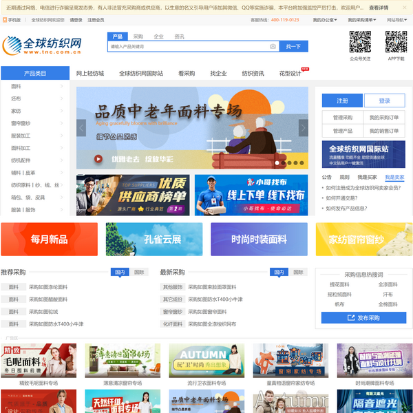 全球紡織網(wǎng):專業(yè)紡織B2B電商平臺,讓你輕松找到貿(mào)易伙伴 。