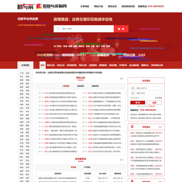 中國招標(biāo)與采購網(wǎng)的招標(biāo)項(xiàng)目信息涉及房屋建筑、市政工程、環(huán)保、交通、煤炭、電力、化工等行業(yè),可提供的項(xiàng)目包括各類土木工程、建筑工程、線路管道、設(shè)備安裝工程及裝修工程項(xiàng)目的勘察、設(shè)計(jì)、施工、監(jiān)理以及與工程建設(shè)有關(guān)的重要設(shè)備、材料采購等招標(biāo)信息;技術(shù)改造項(xiàng)目的施工及設(shè)備、材料采購的招標(biāo);各種生產(chǎn)、生活物資采購的信息服務(wù);審計(jì)、保險(xiǎn)、轉(zhuǎn)讓等各服務(wù)類的招標(biāo)項(xiàng)目。