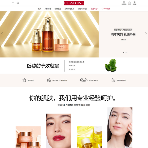 嬌韻詩Clarins是來自法國的天然護膚品牌,采用植物萃取精華,提供全面面部護理與身體護理,并提供無添加護膚產(chǎn)品.點擊進入嬌韻詩官網(wǎng)了解更多詳情.