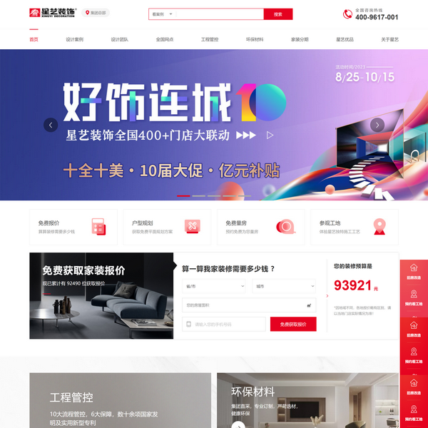 廣東星藝裝飾集團(tuán)有限公司注冊(cè)于1998年,其前身為余靜贛先生于1991年在廣州創(chuàng)立的三星服務(wù)部。2004年經(jīng)國(guó)家工商行政管理總局商標(biāo)局注冊(cè),以“星藝裝飾”為品牌商標(biāo)標(biāo)識(shí)。星藝裝飾是一家以承擔(dān)各類建筑室內(nèi)、室外裝飾裝修工程設(shè)計(jì)和施工為主,以制造家具、銷售建筑裝飾材料和裝飾工藝品為輔的大型裝飾集團(tuán)公司。星藝裝飾400多家經(jīng)營(yíng)網(wǎng)點(diǎn)遍布全國(guó)20多個(gè)省、直轄市、自治區(qū),是中國(guó)建筑裝飾協(xié)會(huì)常務(wù)理事單位,中國(guó)建筑裝飾協(xié)會(huì)住宅裝飾裝修和部品產(chǎn)業(yè)分會(huì)副會(huì)長(zhǎng)單位。公司具有國(guó)家建筑裝飾工程設(shè)計(jì)專項(xiàng)甲級(jí)、建筑裝修裝飾工程專業(yè)承包一級(jí)資質(zhì)、建筑工程施工總承包三級(jí)資質(zhì),并通過(guò)GB/T 24001-2016/ISO 14001:2015環(huán)境管理體系認(rèn)證。星藝裝飾是國(guó)內(nèi)經(jīng)營(yíng)網(wǎng)點(diǎn)分布廣泛、從業(yè)人員眾多,且具有強(qiáng)大專業(yè)實(shí)力的大型裝飾裝修設(shè)計(jì)、施工企業(yè)和旗艦品牌。
