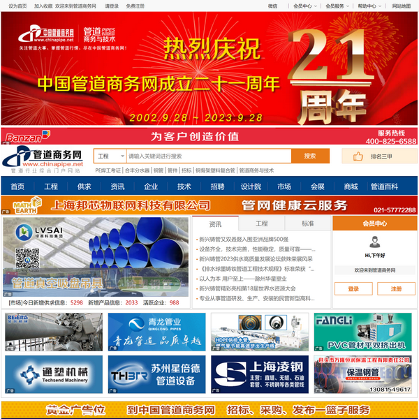 管道商務(wù)網(wǎng)www.chinapipe.net(始于2002年)是專注于管道行業(yè)的B2B電商服務(wù)平臺!包括管塑料管道,鋼管,管材,不銹鋼管,無縫鋼管,管線,保溫管擬在建工程項(xiàng)目、管道標(biāo)準(zhǔn)規(guī)程、非開挖工程等管道信息,為國內(nèi)管道管材企業(yè)提供全面的管道行情資訊和管道電子商務(wù)服務(wù)。