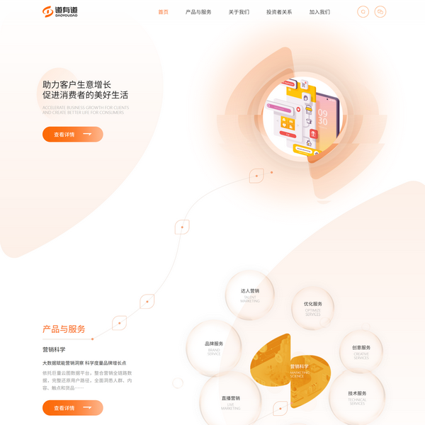 道有道是一家以數(shù)字營銷與數(shù)字電商為核心的科技公司。 公司以助力客戶生意增長,促進(jìn)消費(fèi)者的美好生活為使命,為客戶提供品牌策劃、內(nèi)容創(chuàng)作、智能投放等數(shù)字營銷服務(wù),實(shí)現(xiàn)客戶獲客需求;為客戶提供號(hào)店運(yùn)營、直播電商及達(dá)人服務(wù),實(shí)現(xiàn)客戶銷售增長需求;通過數(shù)字化服務(wù)體系,讓消費(fèi)者享受科技帶來的美好生活。 道有道以「客戶***」與「精益求精」為核心價(jià)值觀,服務(wù)了家居、房產(chǎn)、汽車、零售等行業(yè)的數(shù)百家客戶,公司主要透過短視頻媒體平臺(tái)交付我們的數(shù)字營銷及數(shù)字電商服務(wù)。