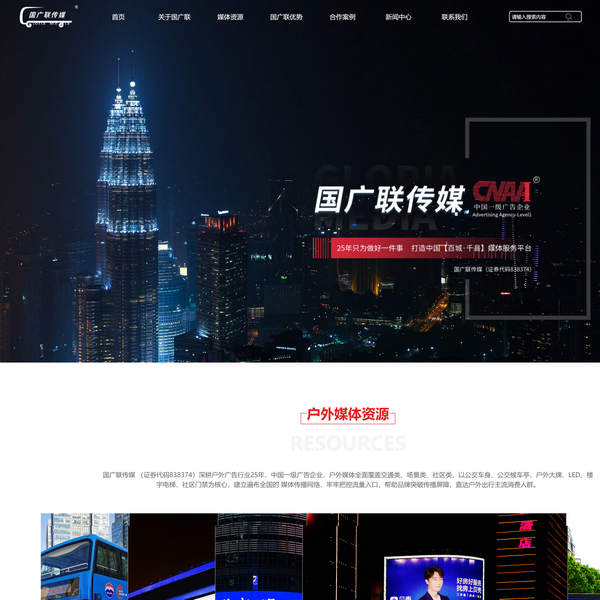 南京國(guó)廣聯(lián)傳媒股份有限公司(證券代碼838374),中國(guó)一級(jí)廣告企業(yè)。公司總部位于南京,下設(shè)南京國(guó)廣聯(lián)戶外傳媒有限公司和江蘇廣聯(lián)通網(wǎng)絡(luò)科技有限公司兩個(gè)子公司。