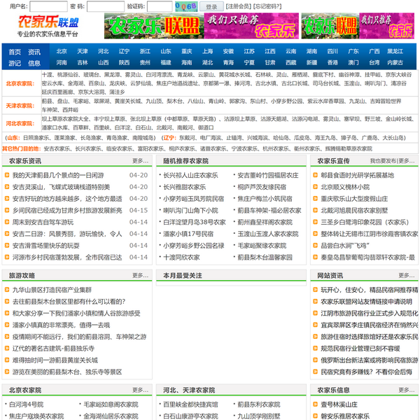 農(nóng)家樂旅游聯(lián)盟是自駕游和自助游的***農(nóng)家樂網(wǎng)站,提供農(nóng)家院查詢和鄉(xiāng)村旅游信息服務(wù),您可以通過農(nóng)家樂聯(lián)盟查詢所在景區(qū)或城市周邊的農(nóng)家樂,了解鄉(xiāng)村旅游行業(yè)資訊!
