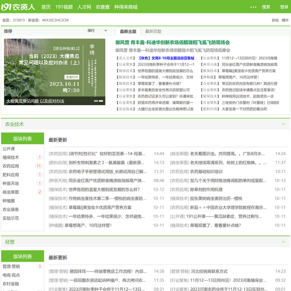 191農(nóng)資人是一個(gè)專注為中國農(nóng)業(yè)發(fā)展提供技術(shù)服務(wù)的農(nóng)技社區(qū)服務(wù)平臺(tái)。自2006年以論壇形式上線以來,191始終以“農(nóng)資人網(wǎng)上的家”的理念,為農(nóng)技人員提供學(xué)習(xí)、交流,成長(zhǎng)的空間,經(jīng)過十年發(fā)展,191農(nóng)資人網(wǎng)已成為農(nóng)資行業(yè)公認(rèn)的門戶網(wǎng)站。