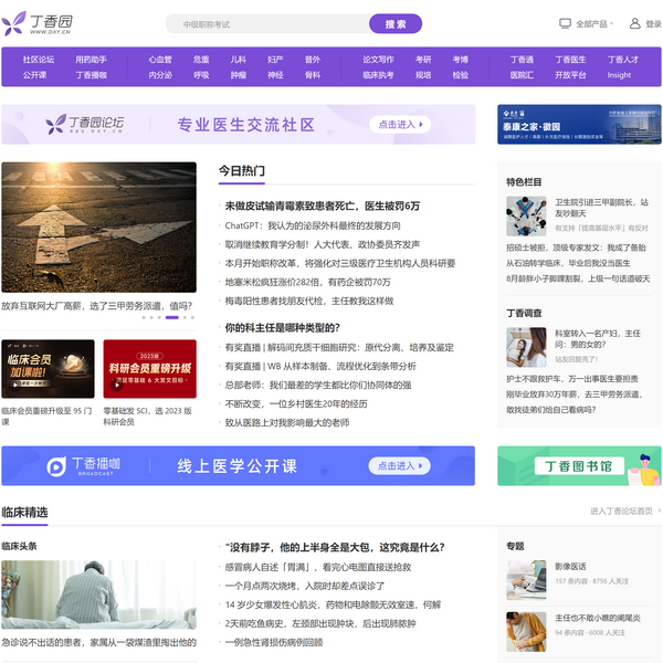 丁香園是面向醫(yī)生、醫(yī)療機(jī)構(gòu)、醫(yī)藥從業(yè)者以及生命科學(xué)領(lǐng)域人士的專業(yè)性社會(huì)化網(wǎng)絡(luò),提供醫(yī)學(xué)、醫(yī)療、藥學(xué)、生命科學(xué)等相關(guān)領(lǐng)域的交流平臺(tái)、專業(yè)知識(shí)、***科研進(jìn)展以及技術(shù)服務(wù)。