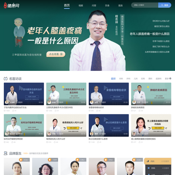 百姓健康網(wǎng)(jiankang.com)作為權(quán)威醫(yī)療門戶網(wǎng)站,為億萬用戶提供完善的醫(yī)療資訊,依靠權(quán)威醫(yī)院專家,院士合作,提供醫(yī)院專家問答,就診信息,醫(yī)患問答平臺,提供權(quán)威健康服務(wù),關(guān)注百姓健康。