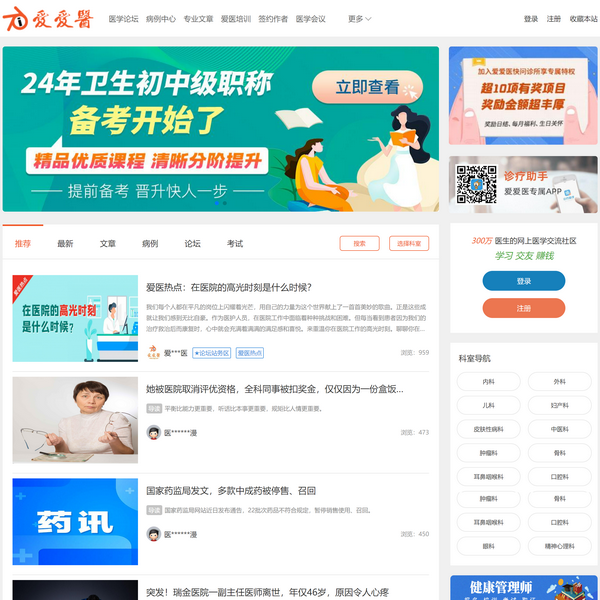 愛愛醫(yī)是面向醫(yī)務(wù)人員的醫(yī)學、藥學專業(yè)知識與經(jīng)驗交流平臺,并為醫(yī)生提供國家醫(yī)學考試中心信息服務(wù)的專業(yè)醫(yī)學網(wǎng)站。