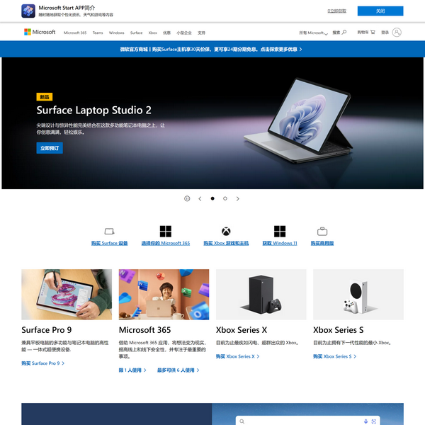 瀏覽適用于家庭或企業(yè)的 Microsoft 產(chǎn)品和服務(wù)。購買 Surface、Microsoft 365、Xbox、Windows、Azure 等產(chǎn)品/服務(wù)。查找下載內(nèi)容并獲取支持。