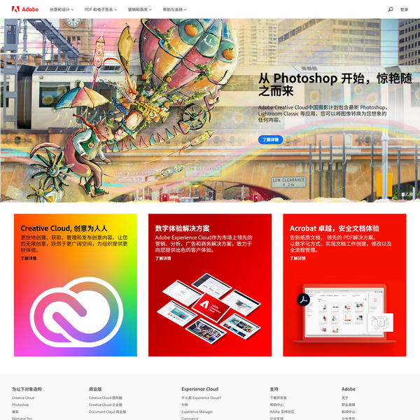 Adobe 成立于 40 年前,秉承“打造可改變世界的創(chuàng)新產(chǎn)品”這一簡單理念,提供開創(chuàng)性技術(shù),使世界各地的每個人都能發(fā)揮想象,創(chuàng)造和實現(xiàn)各種數(shù)字體驗。Adobe 正通過數(shù)字體驗改變世界。我們幫助客戶創(chuàng)建、傳遞和優(yōu)化內(nèi)容及應(yīng)用程序。