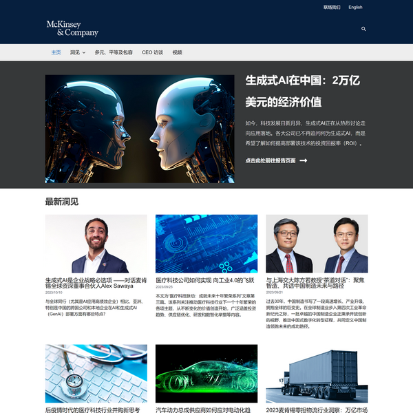 McKinsey麥肯錫(https://www.mckinsey.com.cn/)已被三體網(wǎng)址大全收錄在網(wǎng)址百科信息庫(kù)中,所在分類目錄為”行業(yè)網(wǎng)站 > 跨國(guó)公司 > 跨國(guó)企業(yè)官網(wǎng)“目錄,百科頁(yè)面地址:http://m.fashionflairtrend.com/siteinfo/6451.html。三體網(wǎng)址大全匯聚國(guó)內(nèi)優(yōu)秀網(wǎng)站大全,是提升網(wǎng)站外部鏈接流行度以及影響力的權(quán)威分類目錄及收錄提交入口,歡迎廣大優(yōu)質(zhì)網(wǎng)站提交收錄申請(qǐng)。