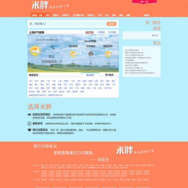 當(dāng)你終于有機(jī)會和家人朋友一起出去游玩的時候,因為來之不易,所以你一定會希望這是個完美的假期:方便的購買,合適的花費,貼心的服務(wù),放心地游玩,回來后很輕松地分享旅行途中的照片和故事。所有這些加起來,才等于一次完美的旅行。米胖自2006年3月成立至今,正是為了這一目標(biāo)而在不斷努力。米胖作為一個旅游服務(wù)平臺,集合各地旅游服務(wù)提供商,為游客提供眾多可以在線購買的旅游服務(wù)和旅游產(chǎn)品。米胖還擁有國內(nèi)最豐富的各地旅游指南和國內(nèi)最活躍的旅游社區(qū),為你提供全方位的旅游服務(wù)。