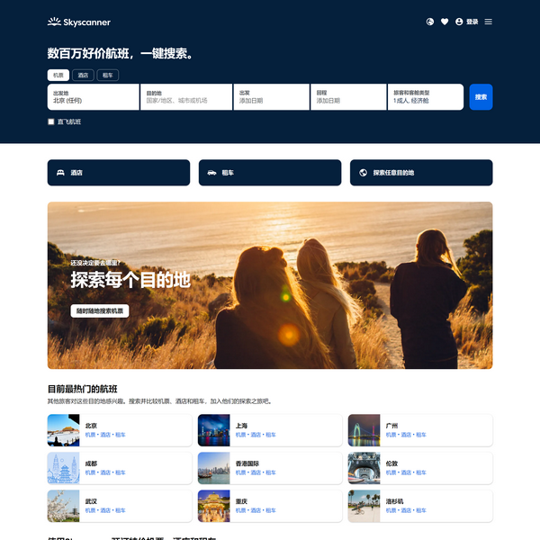 Skyscanner(https://www.tianxun.com/)已被三體網(wǎng)址大全收錄在網(wǎng)址百科信息庫(kù)中,所在分類(lèi)目錄為”行業(yè)網(wǎng)站 > 旅游休閑 > 戶(hù)外/旅游/交通/住宿/票務(wù)“目錄,百科頁(yè)面地址:http://m.fashionflairtrend.com/siteinfo/6551.html。三體網(wǎng)址大全匯聚國(guó)內(nèi)優(yōu)秀網(wǎng)站大全,是提升網(wǎng)站外部鏈接流行度以及影響力的權(quán)威分類(lèi)目錄及收錄提交入口,歡迎廣大優(yōu)質(zhì)網(wǎng)站提交收錄申請(qǐng)。