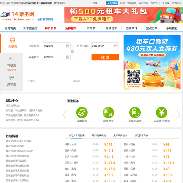 【114票務(wù)網(wǎng)】是國(guó)內(nèi)領(lǐng)先12306火車票網(wǎng)上訂票平臺(tái),提供火車票預(yù)訂、余票、時(shí)刻、票價(jià)、車次等查詢服務(wù),支持全國(guó)火車站代售點(diǎn)12306自取票業(yè)務(wù),12306網(wǎng)上訂火車票官網(wǎng)是您火車出行的好幫手。