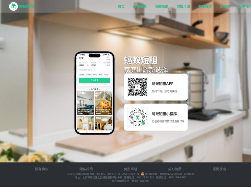 螞蟻短租網(wǎng)是國內(nèi)領(lǐng)先的公寓,民宿,家庭旅館在線短租平臺,致力于為休閑度假旅游人群提供高性價比的住宿服務(wù),房源配備客廳廚房,可洗衣做飯,是家庭出游新選擇。