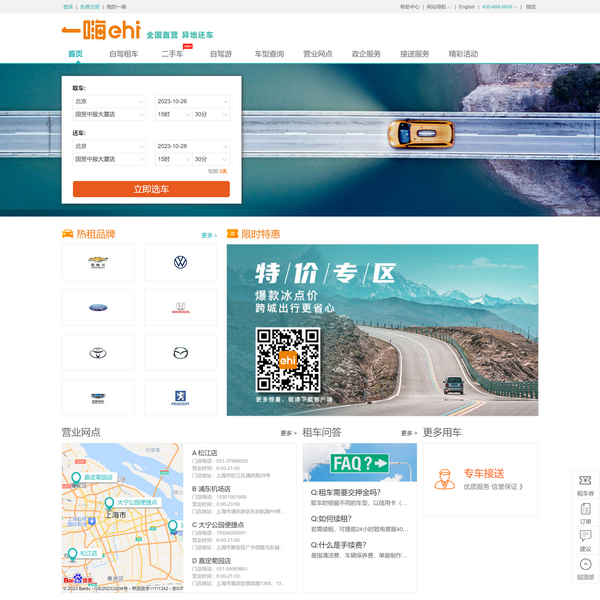 一嗨租車(chē)是國(guó)內(nèi)出行行業(yè)頭部企業(yè),擁有11000+直營(yíng)服務(wù)網(wǎng)點(diǎn),遍布全國(guó)500+城市,提供休閑旅游、通勤代步、商務(wù)出行等多種場(chǎng)景用車(chē)服務(wù),支持全國(guó)多地免異地還車(chē)費(fèi)。車(chē)型眾多:本田新飛度、寶馬3系、保時(shí)捷718、別克GL8等?,F(xiàn)更推出二手車(chē)買(mǎi)賣(mài)服務(wù),14天包退換,一嗨致力于為國(guó)人出行熱忱服務(wù)。