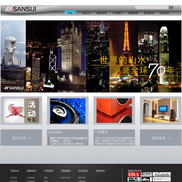 山水自創(chuàng)立近70年以來一直致力于專業(yè)電子音響產(chǎn)品的研發(fā)和生產(chǎn),山水品牌發(fā)展已經(jīng)享譽(yù)全球。山水“SANSUI”品牌的音響產(chǎn)品包括:功率放大器、HIFI音響、家庭影院、一體化橫條音響及播放器、音頻數(shù)字譯碼器、卡拉OK音響系統(tǒng)、教育音響設(shè)備等。憑借先進(jìn)的電氣技術(shù),新穎的外觀、精密的內(nèi)部設(shè)計(jì)和多樣化的功能,根據(jù)中國(guó)人的審美觀念和使用習(xí)慣,推出性價(jià)比更具優(yōu)勢(shì)的影音精品。