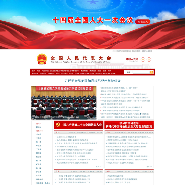 全國人大常委會官方網(wǎng)站,是全國人大及其常委會的重要輿論媒介,信息公開、服務(wù)代表、聯(lián)系人民的重要平臺。中國人大網(wǎng)是全國人大常委會辦公廳主辦的綜合性官方新聞網(wǎng)站,由《中國人大》雜志社承辦。