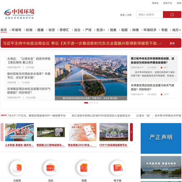 中國環(huán)境網(wǎng)擁有“領(lǐng)導(dǎo)資料庫及留言板”、“兩山論壇”、“兩山社區(qū)”、“治廢專家”等品牌欄目,開設(shè)了要聞、法治、評論、產(chǎn)經(jīng)、環(huán)境質(zhì)量、新坐標(biāo)、藝文志、輿情等頻道,信息容量大,功能齊全,能夠為政府與企業(yè)提供全方位的決策咨詢服務(wù)和宣傳策劃服務(wù)。