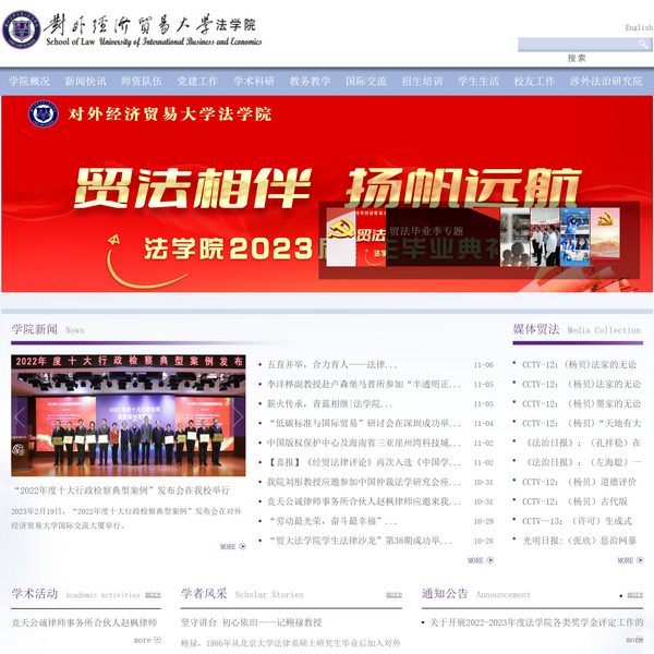 敘四秩芳華,展貿(mào)法新篇。目前對(duì)外經(jīng)濟(jì)貿(mào)易大學(xué)法學(xué)院作為中國(guó)培養(yǎng)涉外經(jīng)貿(mào)法律人才的重鎮(zhèn),正努力躋身于世界一流特色法學(xué)院之列。在學(xué)校、校友和社會(huì)各界朋友的關(guān)心支持下,法學(xué)院全體師生將繼續(xù)秉承“教研立院、實(shí)干興院”之信條,砥礪奮發(fā),開(kāi)拓進(jìn)取,為國(guó)家涉外高端經(jīng)貿(mào)法律人才的培養(yǎng)貢獻(xiàn)更多的心智和力量。
