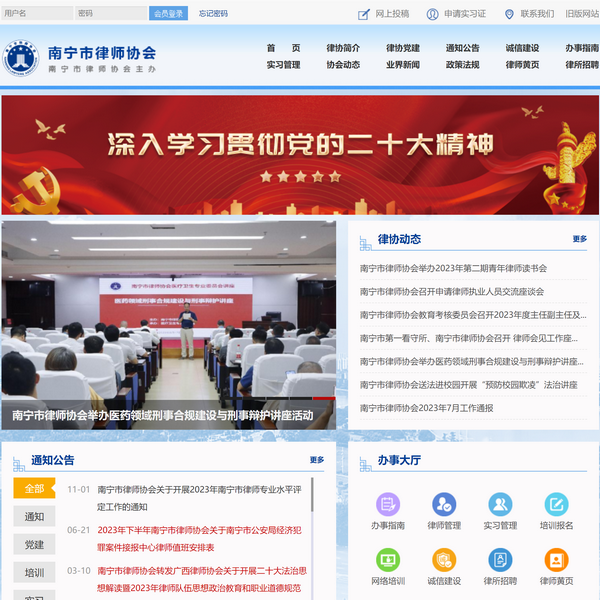 南寧市律師協(xié)會成立于2003年,是依法設(shè)立的社會團(tuán)體法人,是全市律師的自律性組織,依法對本市律師行業(yè)實施管理。廣西壯族自治區(qū)司法廳批準(zhǔn)設(shè)立且接受南寧市司法行政機(jī)關(guān)管理、監(jiān)督和指導(dǎo)的律師執(zhí)業(yè)機(jī)構(gòu)為本會的團(tuán)體會員。經(jīng)廣西壯族自治區(qū)司法廳批準(zhǔn),在南寧市取得律師執(zhí)業(yè)證或律師工作證且接受南寧市司法行政機(jī)關(guān)管理、監(jiān)督、指導(dǎo)的律師為本會的個人會員。申請律師執(zhí)業(yè)人員為本會的預(yù)備會員。