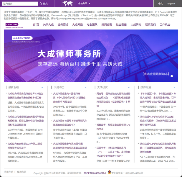 北京大成律師事務(wù)所成立于1992年,是中國(guó)成立最早、規(guī)模***的合伙制律師事務(wù)所之一。秉承“志存高遠(yuǎn),海納百川,跬步千里,共鑄大成”的文化核心理念以及“全球資源、本土智慧”的開放式發(fā)展戰(zhàn)略,大成始終致力于為國(guó)內(nèi)外客戶提供專業(yè)、全面、及時(shí)、優(yōu)質(zhì)、高效的法律服務(wù)。