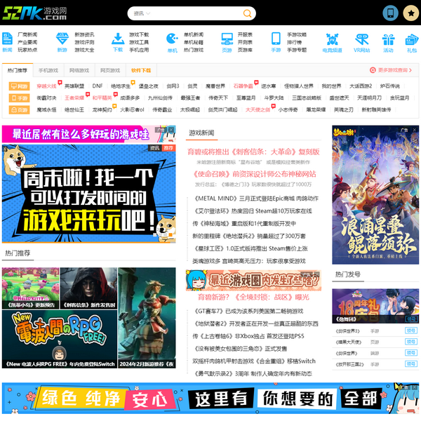52pk游戲網(wǎng)是中文游戲門戶站,匯聚國內(nèi)外游戲熱點報道,為千萬網(wǎng)站用戶365天提供權威游戲資訊,全方位打造免費中文網(wǎng)游單機游戲下載大全。
