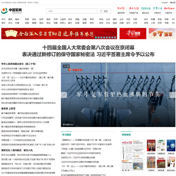 中國軍網(wǎng)是經(jīng)中央軍委批準(zhǔn)的中國人民解放軍***新聞門戶網(wǎng)站,***時(shí)間向全球網(wǎng)民發(fā)布權(quán)威軍事資訊,追蹤軍事熱點(diǎn),反映軍事動(dòng)態(tài),介紹國內(nèi)外***武器發(fā)展動(dòng)態(tài),擁有中國***的軍事圖片庫,提供***發(fā)布的軍事視頻。