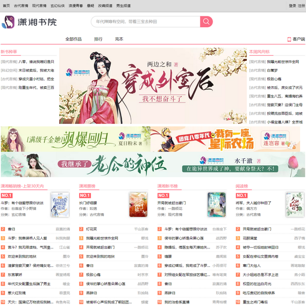 瀟湘書院是國(guó)內(nèi)知名原創(chuàng)網(wǎng)絡(luò)文學(xué)門戶, 擁有海量的女生完結(jié)全本小說(shuō)作品, 提供熱門小說(shuō)排行榜免費(fèi)在線閱讀, 每日更新言情、都市、穿越、青春、懸疑等作品連載。