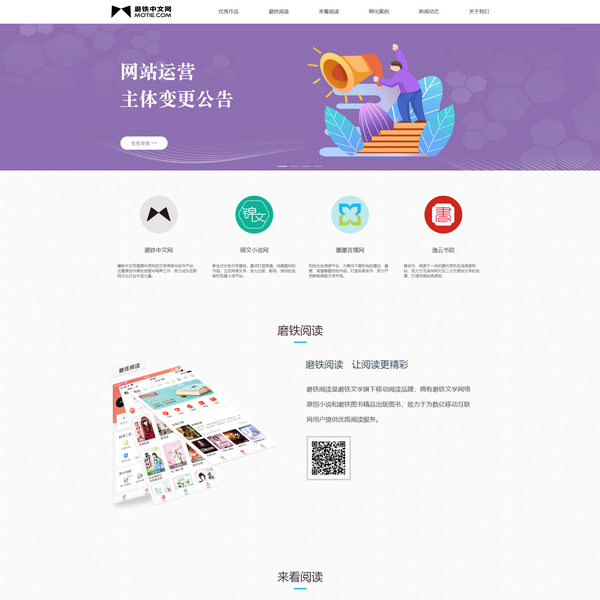 磨鐵文學(xué)旗下包括四大網(wǎng)絡(luò)文學(xué)內(nèi)容品牌:磨鐵中文網(wǎng)、墨墨言情網(wǎng)、錦文小說網(wǎng)和逸云書院,兩大移動(dòng)閱讀平臺(tái):磨鐵閱讀APP和來看閱讀APP。