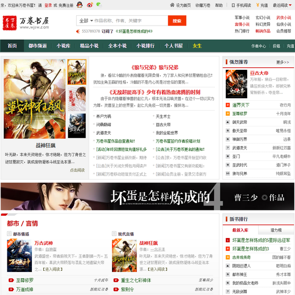 萬(wàn)卷書(shū)屋提供都市小說(shuō)、言情小說(shuō)、玄幻小說(shuō)、武俠小說(shuō)、修真小說(shuō)等小說(shuō)在線閱讀、手機(jī)閱讀與電子書(shū)下載,txt小說(shuō)下載,無(wú)彈窗。