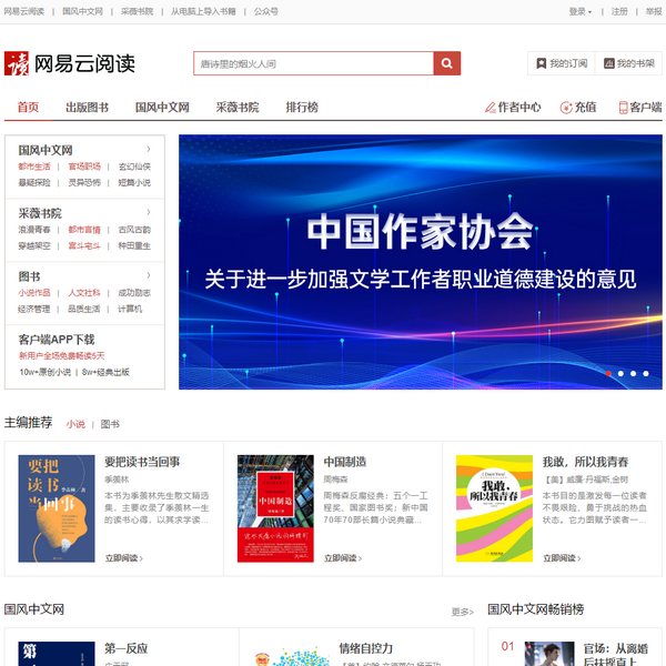 網(wǎng)易云閱讀提供豐富的原創(chuàng)小說、暢銷好書、熱門新聞和文章免費(fèi)在線閱讀和下載。包括文學(xué)、傳記、藝術(shù)、經(jīng)濟(jì)管理,官場(chǎng)小說、都市小說、言情小說,熱血漫畫,旅游、電影雜志等。手機(jī)上支持Android、iPhone、iPad、Android Pad、Windows Phone、Windows8等多平臺(tái)免費(fèi)下載!