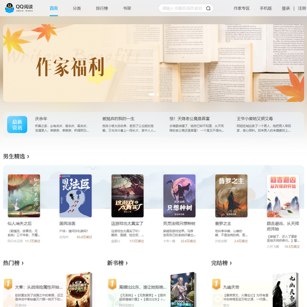 QQ閱讀,***熱門小說網(wǎng)站,提供玄幻小說、武俠小說、原創(chuàng)小說、網(wǎng)游小說、都市小說、言情小說、青春小說、科幻小說等首發(fā)小說,***章節(jié)在線閱讀。更多精彩盡在QQ閱讀。