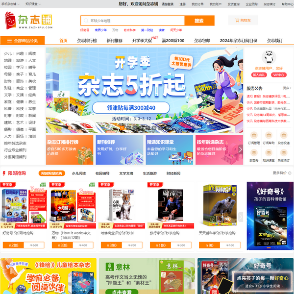 雜志鋪-專業(yè)的雜志訂閱商城,提供囊括育兒親子、學(xué)習(xí)輔導(dǎo)、文學(xué)文摘、科技科普、地理旅游、時(shí)尚生活、財(cái)經(jīng)新聞、藝術(shù)設(shè)計(jì)、人文歷史、老年健康等上萬種雜志;雜志鋪提供更多品種、超低價(jià)格、更方便的一站式的雜志訂閱服務(wù);快遞配送,不掉刊,不漏刊;全年都是訂閱季,想訂就訂,退換自由;雜志鋪承諾提供***正版雜志,訂雜志就上雜志鋪!