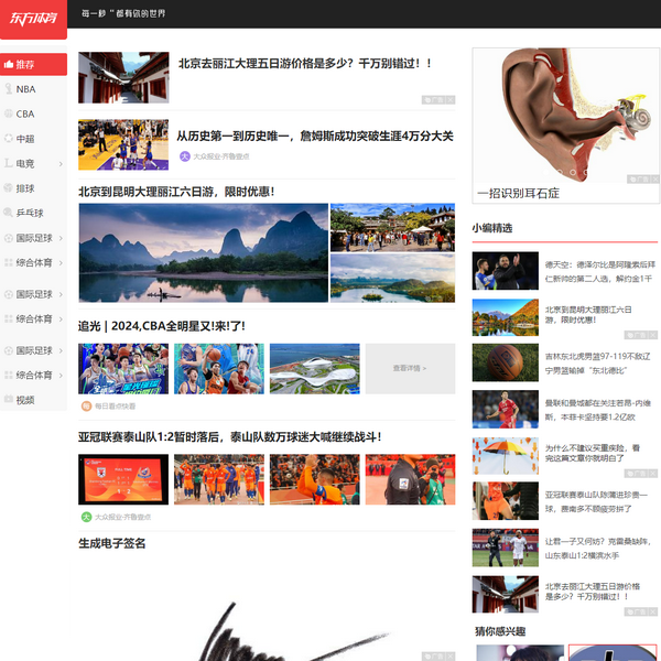 東方體育是東方網(wǎng)旗下的體育新聞直播門(mén)戶網(wǎng)站,提供NBA直播、CBA直播、中超|英超|西甲足球直播等體育賽事直播,還有乒乓球、羽毛球、網(wǎng)球、籃球、足球等更多精彩體育賽事新聞報(bào)道和視頻集錦回放。了解***足球/籃球等體育賽程,敬請(qǐng)關(guān)注東方體育,海量體育新聞,每一秒都有你的世界!