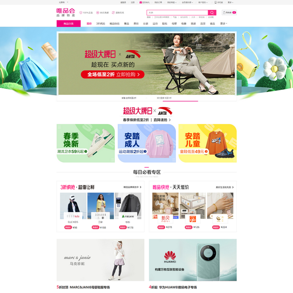 唯品會vip購物網(wǎng)以1-7折超低折扣對全球各大品牌進(jìn)行限時特賣,商品囊括服裝、化妝品、家居、奢侈品等上千品牌。***正品、低價、貨到付款、7天無理由退貨。