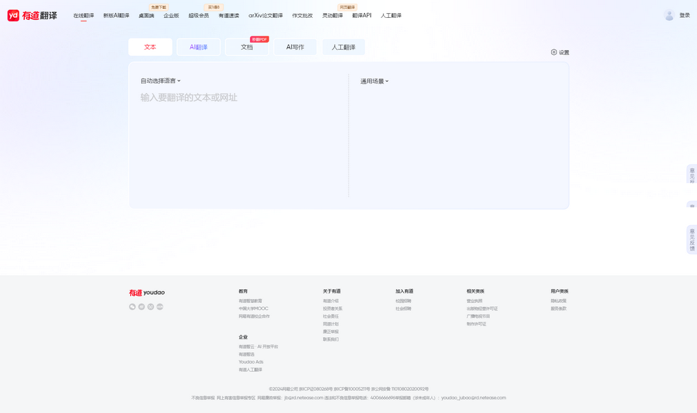 有道翻譯提供即時(shí)免費(fèi)的中文、英語、日語、韓語、法語、德語、俄語、西班牙語、葡萄牙語、越南語、印尼語、意大利語、荷蘭語、泰語全文翻譯、網(wǎng)頁翻譯、文檔翻譯、PDF翻譯、DOC翻譯、PPT翻譯、人工翻譯、同傳等服務(wù)。