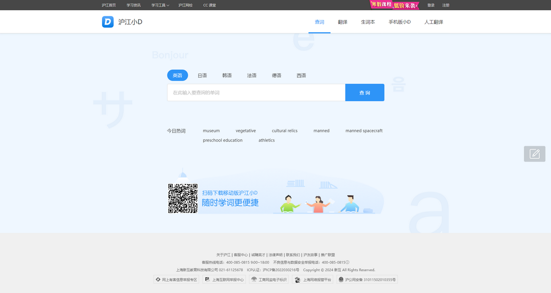 滬江小D,***用的在線詞典,擁有豐富可靠的詞典數據,提供權威準確的英、日、法、韓、西班牙、德語在線查詞、在線翻譯服務。