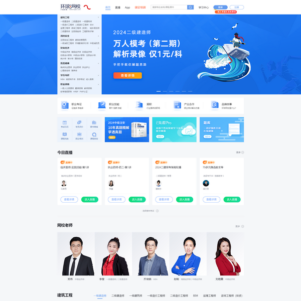 【環(huán)球網(wǎng)校官網(wǎng)】成立于2003年起,連續(xù)多年獲評十佳網(wǎng)絡教育機構(gòu),是職業(yè)教育行業(yè)知名的職業(yè)考試遠程輔導機構(gòu),美國納斯達克上市企業(yè)歡聚時代(NASDAQ:YY)旗下品牌,致力打造以學員為中心、以教育為本、以創(chuàng)新驅(qū)動的在線職業(yè)教育平臺。