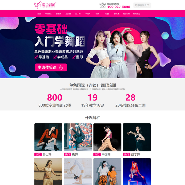 單色舞蹈是集中國(guó)舞、爵士舞、拉丁舞、街舞、肚皮舞于一體的舞蹈培訓(xùn)機(jī)構(gòu),目前在武漢、長(zhǎng)沙、鄭州、西安、成都、重慶、深圳等位置都有直營(yíng)分館!17年的舞蹈教育經(jīng)驗(yàn),中國(guó)舞蹈家協(xié)會(huì)5星級(jí)考級(jí)機(jī)構(gòu)+教學(xué)單位!