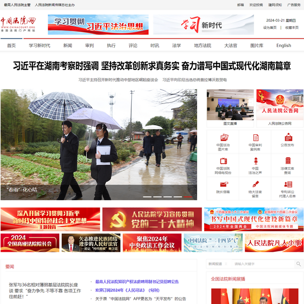 中國法院網(wǎng)是經(jīng)***人民法院批準(zhǔn)成立,經(jīng)國務(wù)院新聞辦公室批準(zhǔn)從事刊載新聞業(yè)務(wù)的綜合性新聞網(wǎng)站,并經(jīng)國家廣電總局批準(zhǔn)自辦視頻播放業(yè)務(wù)。中國法院網(wǎng)是世界***的法律網(wǎng)站、法律新聞網(wǎng)站,為社會提供最豐富的法律資訊、最權(quán)威的法院信息、最快捷的案件報道。