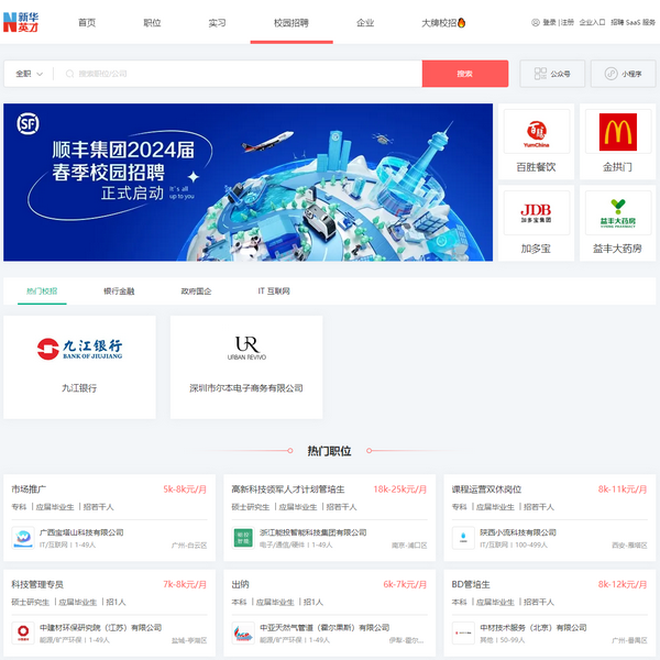 新華英才招聘網(wǎng)是新華網(wǎng)與中華英才網(wǎng)合作推出的招聘網(wǎng)站,為您提供社會招聘、校園招聘、實(shí)習(xí)招聘、名企招聘等求職信息;為全國名企及廣大企業(yè)提供招聘服務(wù),助求職者找到知名企業(yè)和高薪職位!
