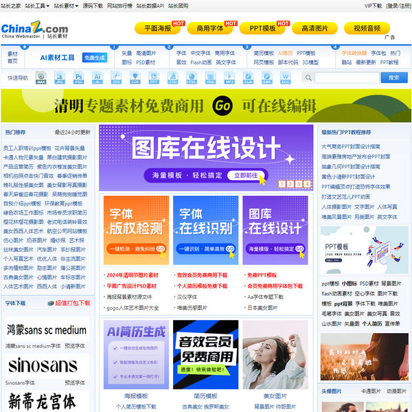 站長(zhǎng)素材是一家大型綜合設(shè)計(jì)類素材網(wǎng)站,提供高清圖片素材、PSD素材、PPT模板、網(wǎng)頁(yè)模板、腳本素材、簡(jiǎn)歷模板、矢量素材、3D素材、酷站欣賞、Flash動(dòng)畫等設(shè)計(jì)素材免費(fèi)下載和在線預(yù)覽服務(wù)。