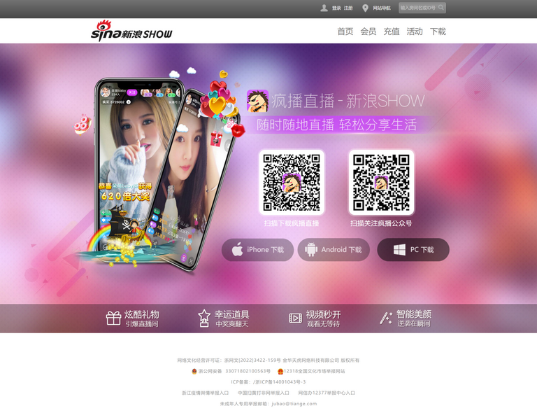 新浪SHOW—邂逅、偶遇,我在直播等你!新浪SHOW原新浪UC聊天室是由新浪網推出的視頻聊天室,免費提供交友、視頻KTV、股票財經、網絡視頻教學、視頻游戲等多元化視頻聊天互動平臺。